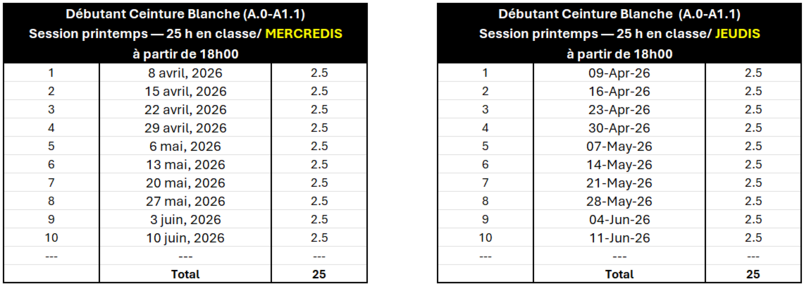 Price : 352,00$ ppr session, per participant